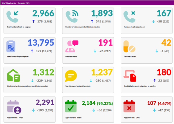 Wye Valley Practice activity data for December 2025